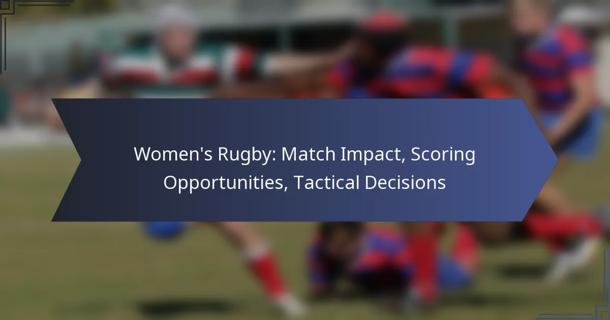Women’s rugby is shaped by a variety of factors that impact match outcomes, including player performances, environmental conditions, and coaching strategies. Teams can enhance their chances of victory by understanding primary scoring opportunities such as tries, conversions, and penalties. Additionally, tactical decisions play a vital role, as they determine how effectively teams can capitalize on scoring chances and respond to their opponents during the game.